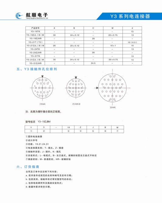 Y3系列圓形航空插頭