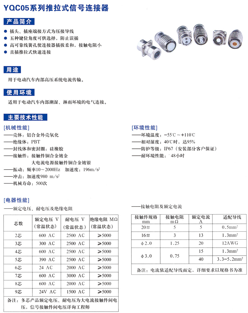 YQC05系列推拉式信號(hào)鏈接電連接器