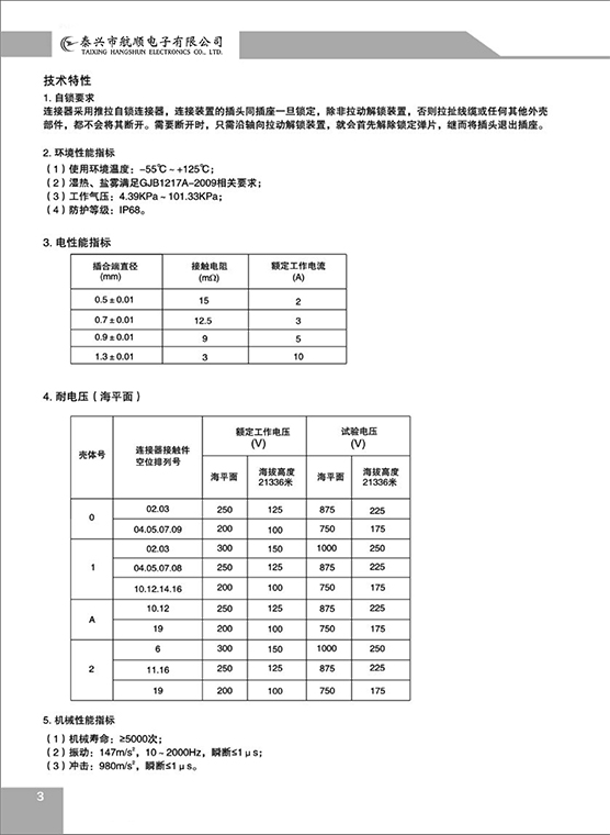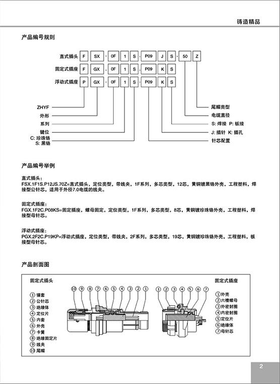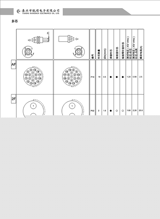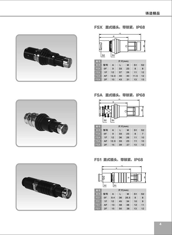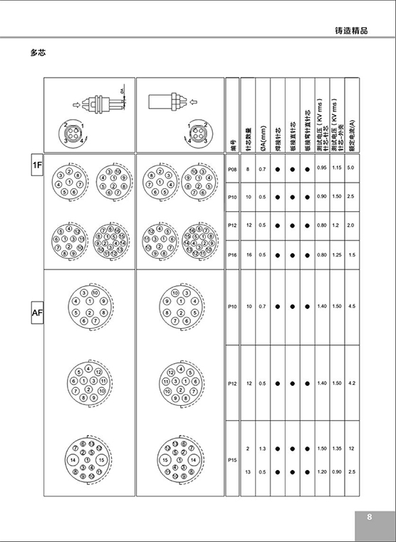 本公司專業(yè)生產(chǎn)銷售雷莫防水連接器圓形防水連接器,能與瑞士雷莫Lemo、德國歐度ODU 同等型號系列產(chǎn)品完全互配互換。廣泛應(yīng)用于通訊、電子、檢測與測量、機械設(shè)備、醫(yī)療器械及儀器儀表等行業(yè);特別適用于需頻繁連接分離、需屏蔽的儀器儀表及設(shè)備上的電連接。 F系列連接器主要特點: 1 、安全的分瓣式推拉自鎖系統(tǒng); 2 、多芯類型2-21芯; 3 、焊接和印刷線路板針芯(直式和彎腳式); 4 、高密度安裝,節(jié)省空間; 5 、360度屏蔽提供全方位的EMC防護。 6 、插座為真空密封結(jié)構(gòu),適用于要求密閉的設(shè)備; 7 、多種插頭內(nèi)鍵位選擇,避免相似連接器之間的混插; 連接器的零件組成: 1、外殼采用銅合金加工,表面鍍鉻或者鍍鎳,特殊要求可以采用不銹鋼; 2、插針插孔采用銅合金加工,表面鍍金; 3、絕緣體采用耐高溫、具有良好絕緣性能的工程塑料注塑成型; 4、護套采用軟性工程塑料注塑成型,能很好的保護電纜。 5、防水密封圈采用耐磨的橡膠成型。 LH H T 1 F 14 9.2 Ni ①      ② ③ ④ ⑤ ⑥ ⑦ ⑧ ⑨ ①首  標:LH表航空電連接器 ②    插頭或插座形式: 插頭形式有:H: 插頭是標準型直插頭,電纜夾固定電纜,內(nèi)部零件防止電纜轉(zhuǎn)動,半圓金屬防止誤插。                     插座形式有:M: 插座是真空密封型插座,外螺母固定結(jié)構(gòu),半圓金屬防止誤插。 ③    插頭、插座:T-插頭,Z-插座 ④    殼體號:0、1、2、3.。。。。 ⑤    設(shè)計系列號:F ⑥    接插件芯數(shù):2、3、4、5.。。。。芯 ⑦    電纜線徑 ⑧    表面處理:Ni-鍍鎳,C-砂鉻,H-黑鉻