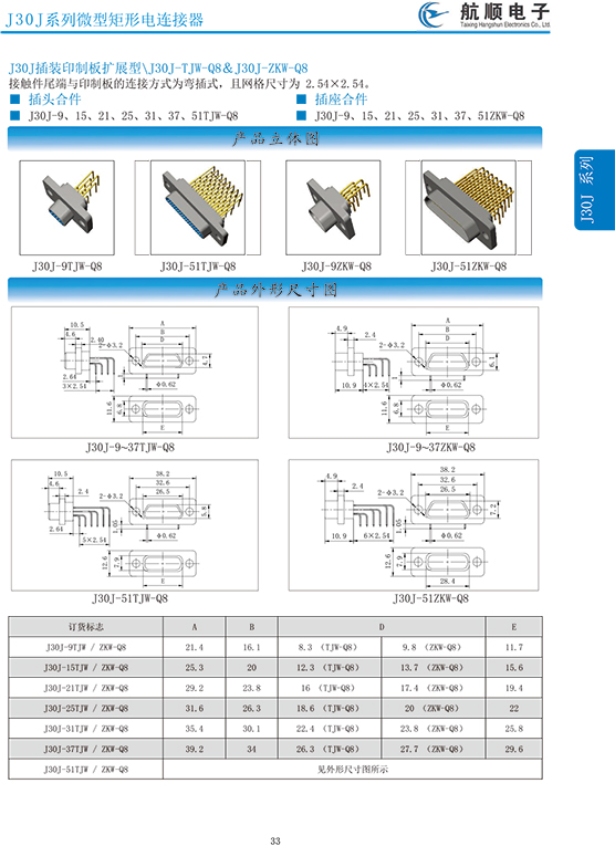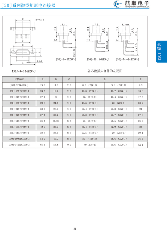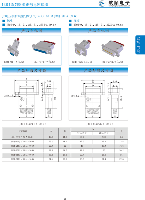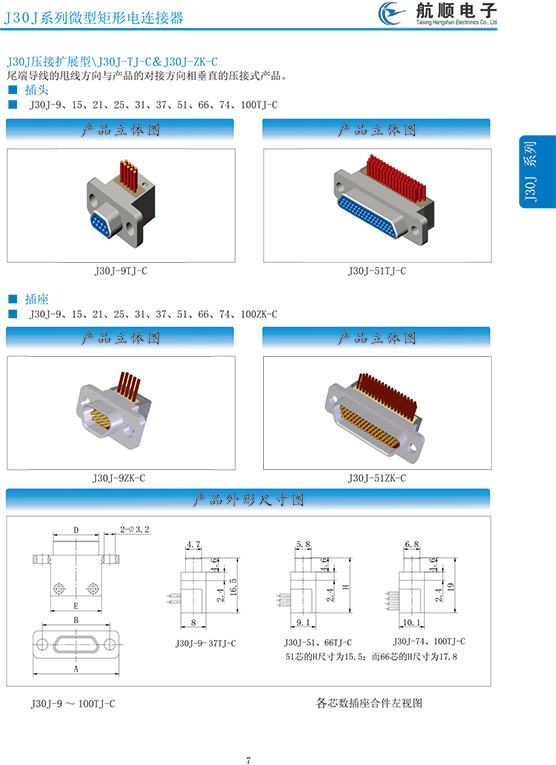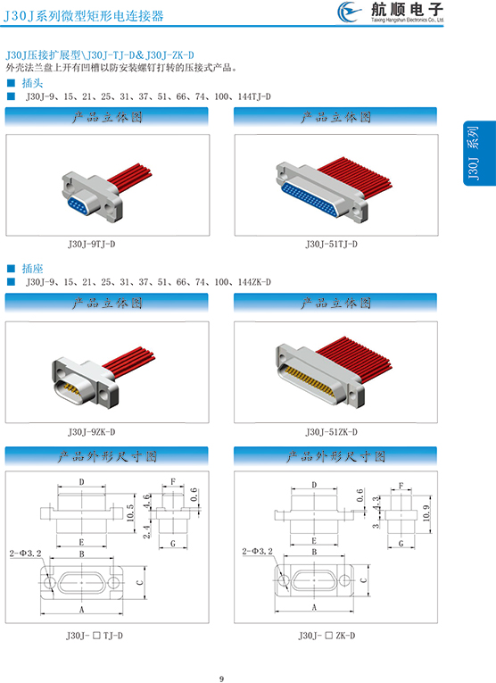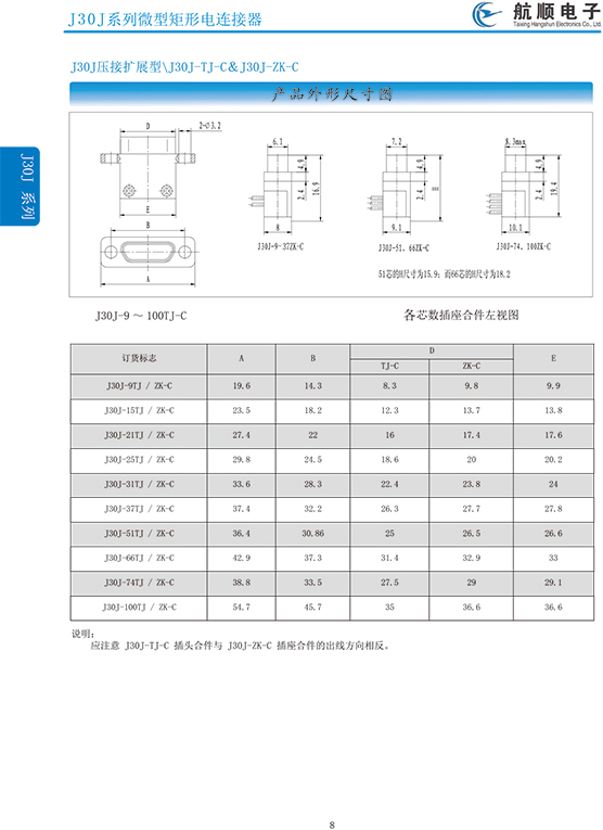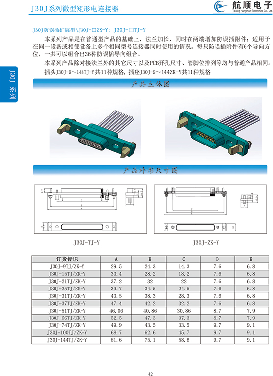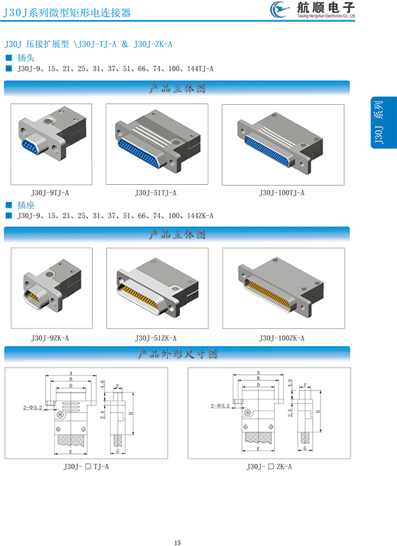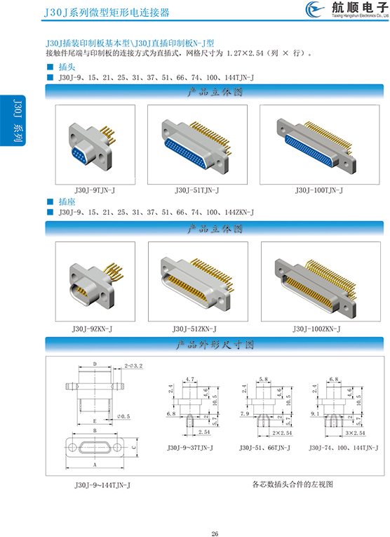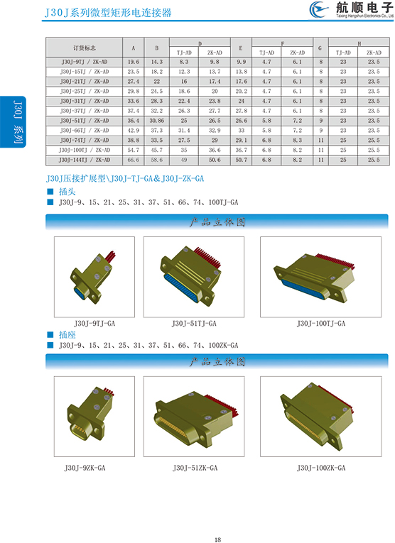 符合GJB2446《外殼定位超小型矩形電連接器總規(guī)范》(相當(dāng)于美軍標(biāo)MIL-C-83513,可與美國MDM系列產(chǎn)品和國內(nèi)同類產(chǎn)品互換,在J30系列產(chǎn)品的基礎(chǔ)上增 加了鋁合金外殼與各種鋁合金尾夾;采用絞線式插針 (俗稱麻花針),單個接觸件接觸點達七個,提高了產(chǎn)品的接觸可靠性;采用1.27mm網(wǎng)格,接觸件密度大、體積小、重量輕;現(xiàn)有9、15、21、25、31、3751、6674、100芯共十種型譜可供選用;適用導(dǎo)線線芯 截面積為0.070.15mm2,尾端可以根據(jù)用戶要求進行 布線;本產(chǎn)品的鎖緊組件按與產(chǎn)品組裝在一起提供,如不需鎖緊組件請在合同中注明;本系列產(chǎn)品滿足GJB2446《外殼定位超小型矩形電連接器總規(guī)范》的 要求;本系列產(chǎn)品的執(zhí)行標(biāo)準(zhǔn)如下:Q/ZHDZ GC-18J30J系列微矩形電連接器詳細規(guī)范》。