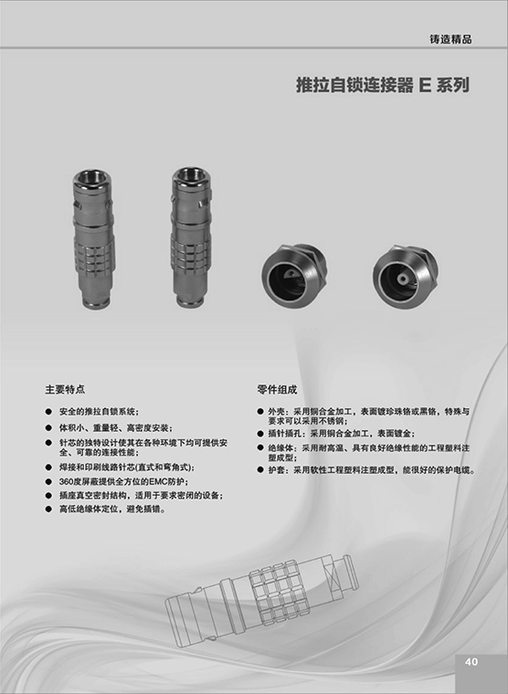 本公司專業(yè)生產(chǎn)銷售雷莫防水連接器圓形防水連接器,能與瑞士雷莫Lemo、德國歐度ODU 同等型號系列產(chǎn)品完全互配互換。廣泛應(yīng)用于通訊、電子、檢測與測量、機(jī)械設(shè)備、醫(yī)療器械及儀器儀表等行業(yè);特別適用于需頻繁連接分離、需屏蔽的儀器儀表及設(shè)備上的電連接。