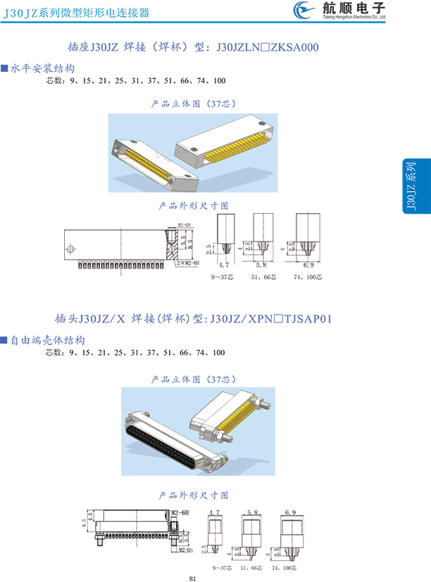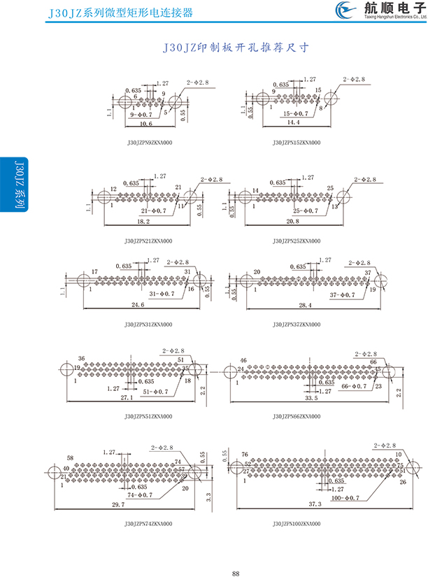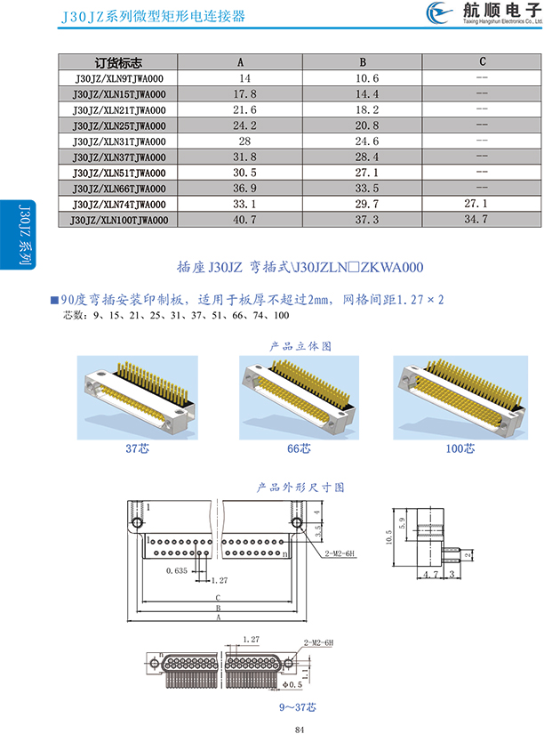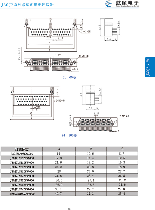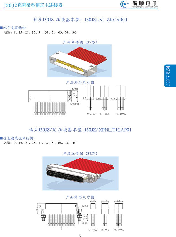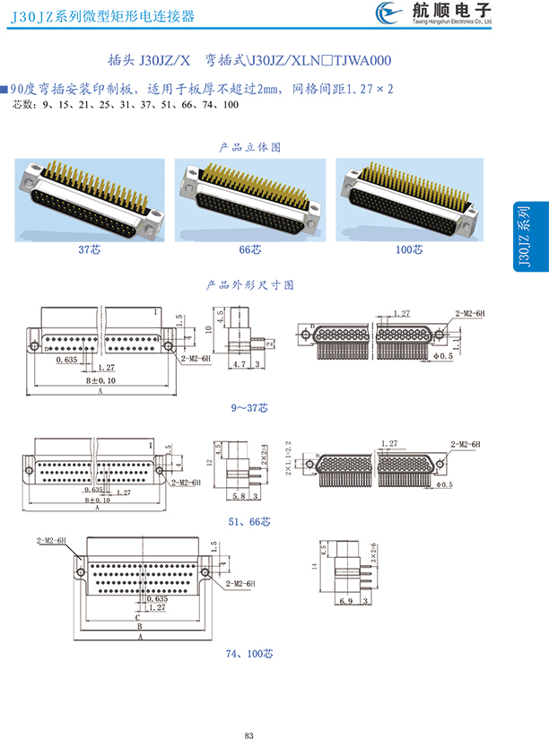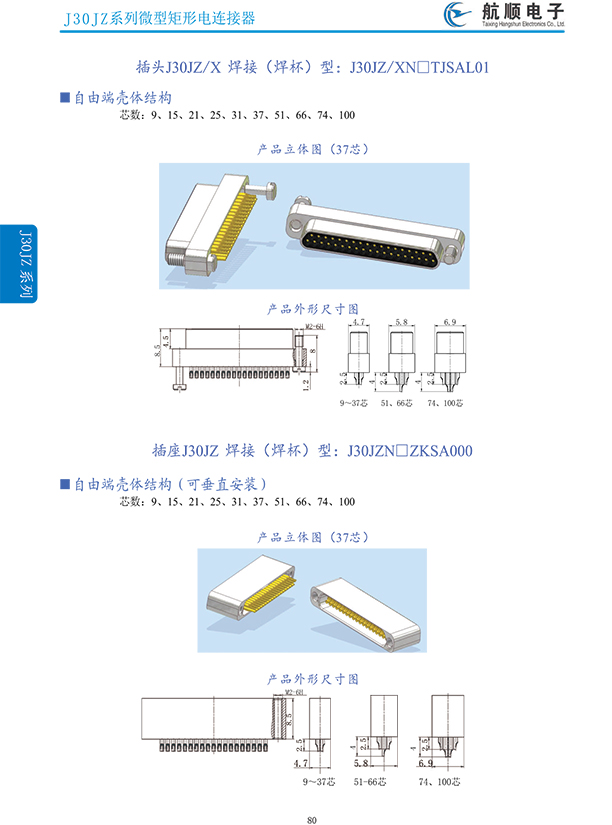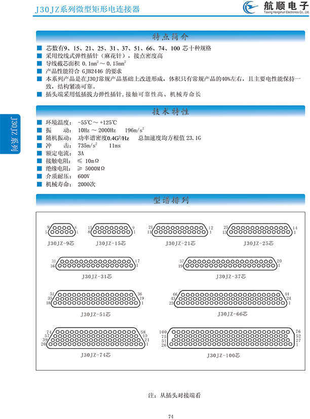 符合GJB2446《外殼定位超小型矩形電連接器總規(guī)范》(相當(dāng)于美軍標(biāo)MIL-C-83513,可與美國MDM系列產(chǎn)品和國內(nèi)同類產(chǎn)品互換,在J30系列產(chǎn)品的基礎(chǔ)上增 加了鋁合金外殼與各種鋁合金尾夾;采用絞線式插針 (俗稱麻花針),單個(gè)接觸件接觸點(diǎn)達(dá)七個(gè),提高了產(chǎn)品的接觸可靠性;采用1.27mm網(wǎng)格,接觸件密度大、體積小、重量輕;現(xiàn)有9、15、21、2531、3751、6674、100芯共十種型譜可供選用;適用導(dǎo)線線芯 截面積為0.070.15mm2,尾端可以根據(jù)用戶要求進(jìn)行 布線;本產(chǎn)品的鎖緊組件按與產(chǎn)品組裝在一起提供,如不需鎖緊組件請?jiān)诤贤凶⒚?;本系列產(chǎn)品滿足GJB2446《外殼定位超小型矩形電連接器總規(guī)范》的 要求;本系列產(chǎn)品的執(zhí)行標(biāo)準(zhǔn)如下:Q/ZHDZ GC-18J30J系列微矩形電連接器詳細(xì)規(guī)范》。