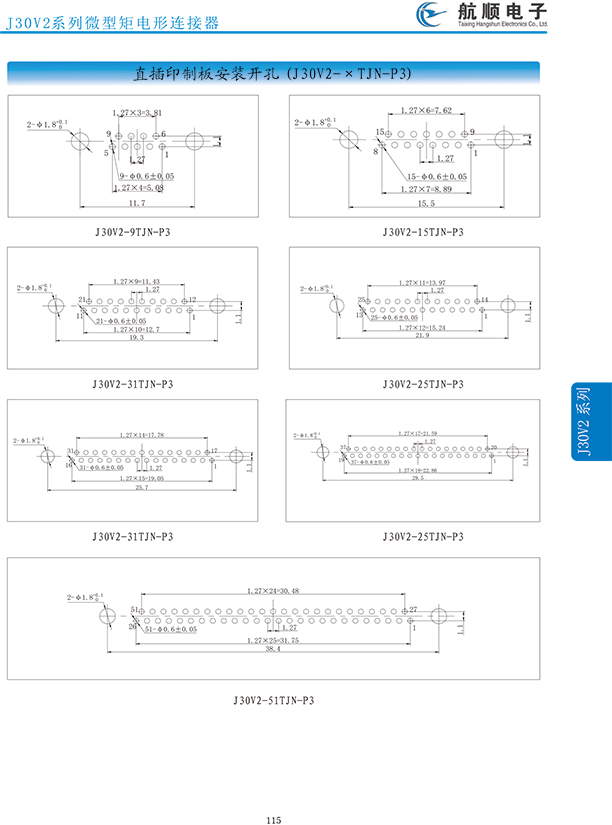 符合GJB2446《外殼定位超小型矩形電連接器總規(guī)范》(相當(dāng)于美軍標(biāo)MIL-C-83513),可與美國(guó)MDM系列產(chǎn)品和國(guó)內(nèi)同類(lèi)產(chǎn)品互換,在J30系列產(chǎn)品的基礎(chǔ)上增 加了鋁合金外殼與各種鋁合金尾夾;采用絞線式插針 (俗稱(chēng)麻花針),單個(gè)接觸件接觸點(diǎn)達(dá)七個(gè),提高了產(chǎn)品的接觸可靠性;采用1.27mm網(wǎng)格,接觸件密度大、體積小、重量輕;現(xiàn)有9、15、21、25、31、37、51、66、74、100芯共十種型譜可供選用;適用導(dǎo)線線芯 截面積為0.07~0.15mm2,尾端可以根據(jù)用戶要求進(jìn)行 布線;本產(chǎn)品的鎖緊組件按與產(chǎn)品組裝在一起提供,如不需鎖緊組件請(qǐng)?jiān)诤贤凶⒚鳎槐鞠盗挟a(chǎn)品滿足GJB2446《外殼定位超小型矩形電連接器總規(guī)范》的 要求;本系列產(chǎn)品的執(zhí)行標(biāo)準(zhǔn)如下:Q/ZHDZ GC-18《J30J系列微矩形電連接器詳細(xì)規(guī)范》。