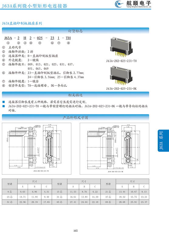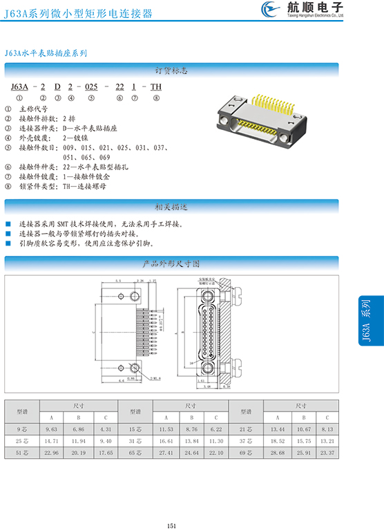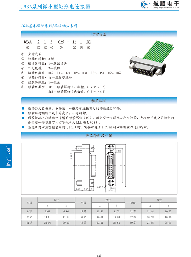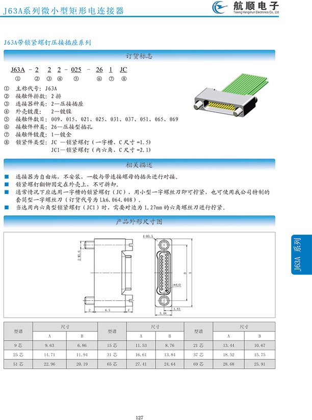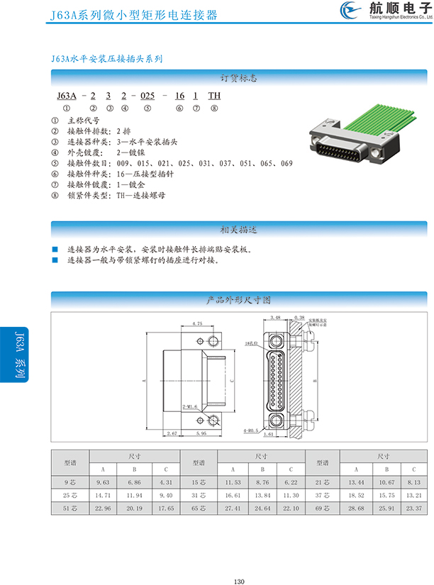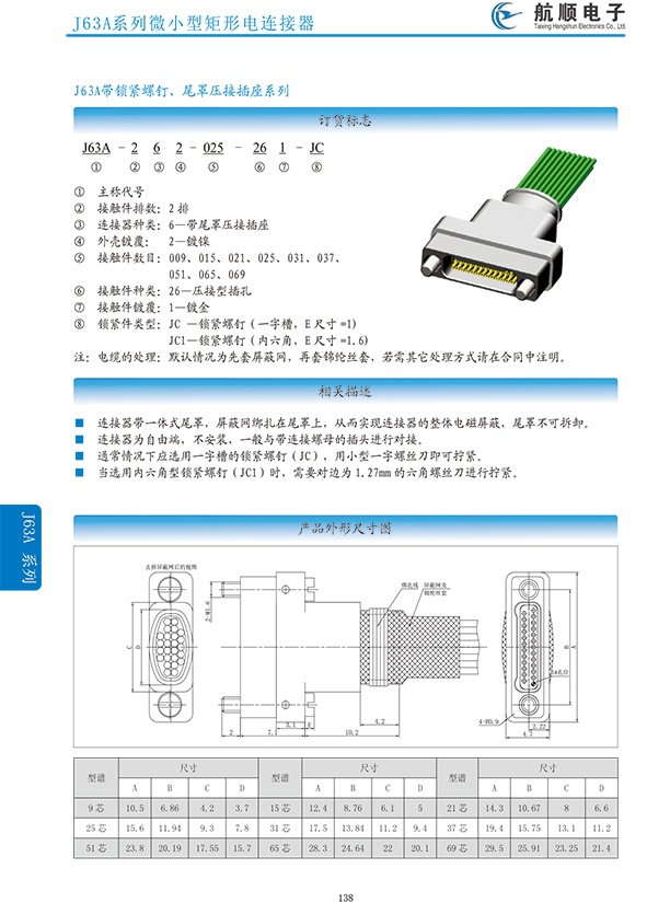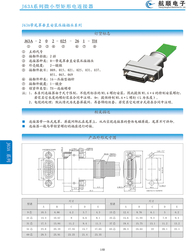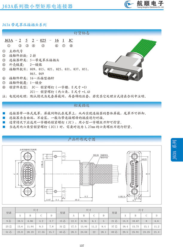 規(guī)格有9、15、21、25、31、37、51、65、69芯;