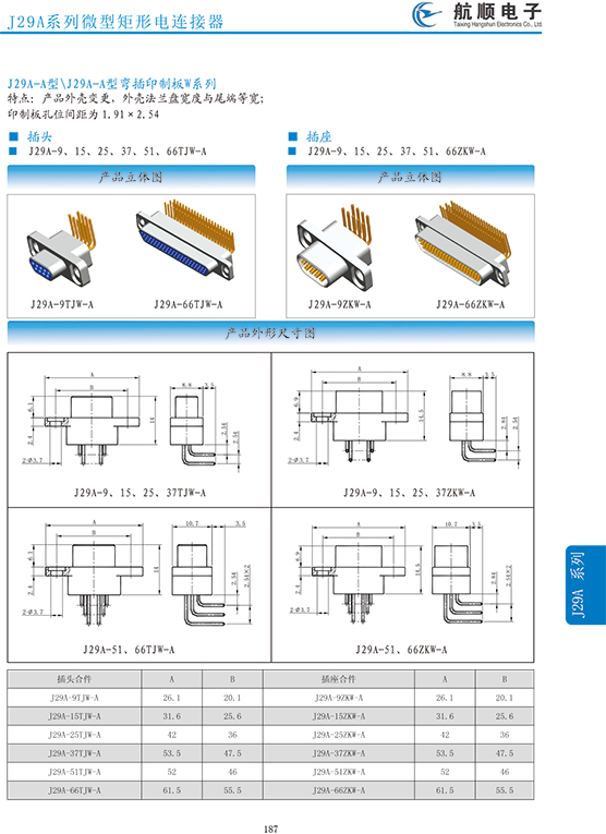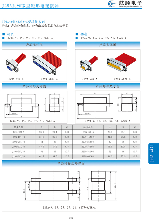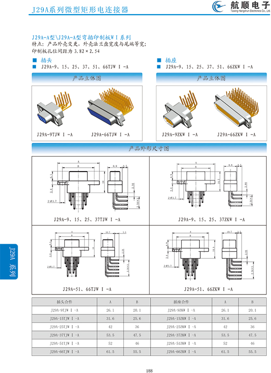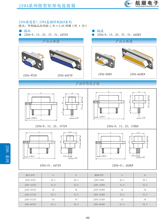 產(chǎn)品特點: 規(guī)格有9、15、21、25、31、37、51、65、69芯; 采用柔性針結(jié)構(gòu),間距為0.635mm; 占用空間小,頭、座采用螺釘螺母旋合對接,插拔柔和、鎖緊可靠; 產(chǎn)品密度高、體積小、重量輕、可靠性高;