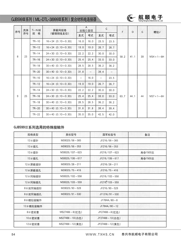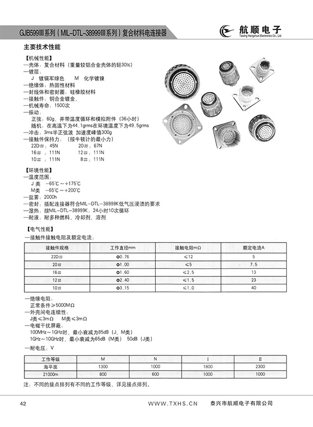 廣泛應(yīng)用于在航空、航天、兵器、電子等領(lǐng)域的系統(tǒng)設(shè)備信號傳輸。符合GJB599(MIL-DTL-38999)III系列,三頭螺紋快速連接,并帶防松機構(gòu),具有高溫下的高強度振動特性,綜合性能高。